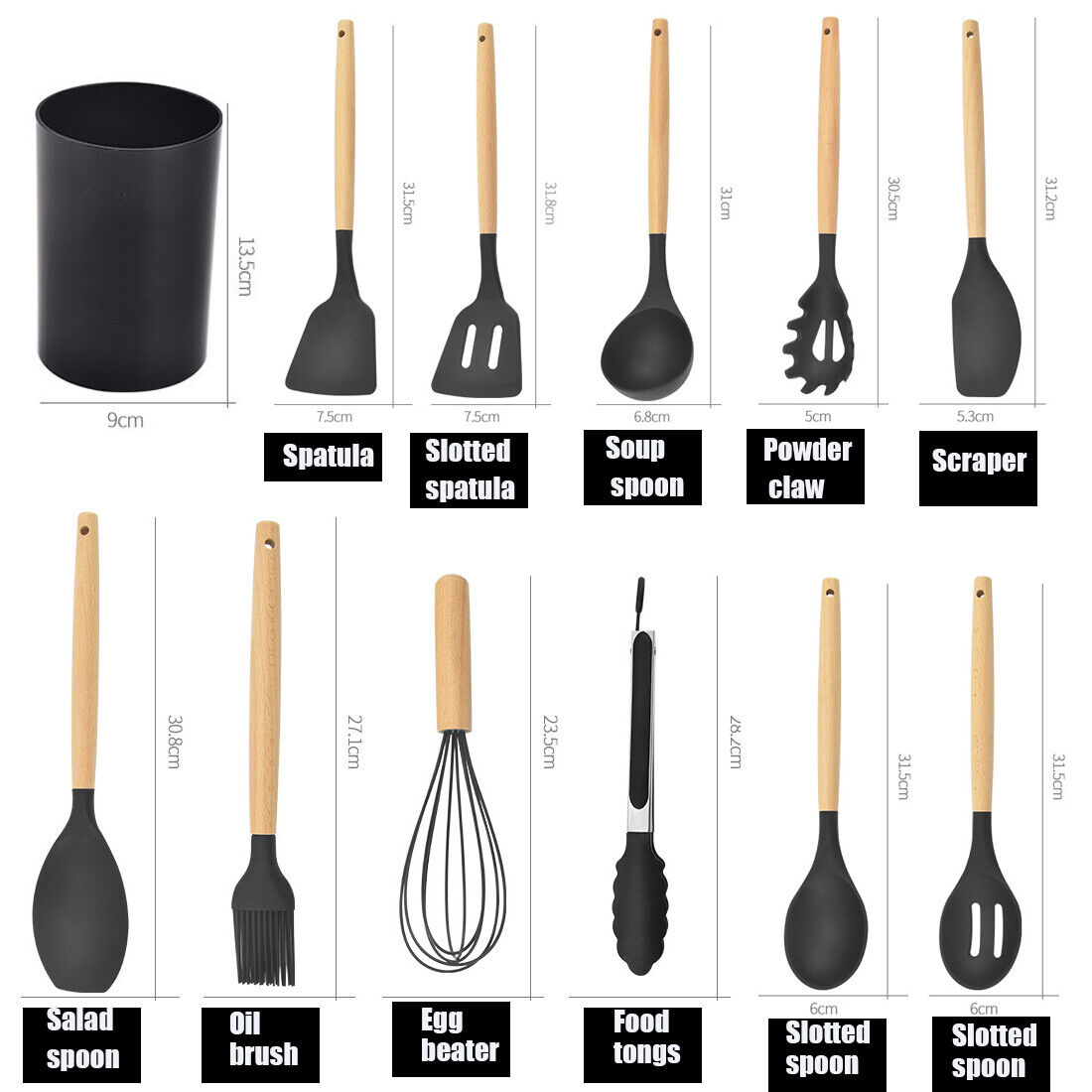 New 12Pcs Kitchen Utensils Set Silicone Cooking Nonstick Spatula Turner Spoon Tools UK